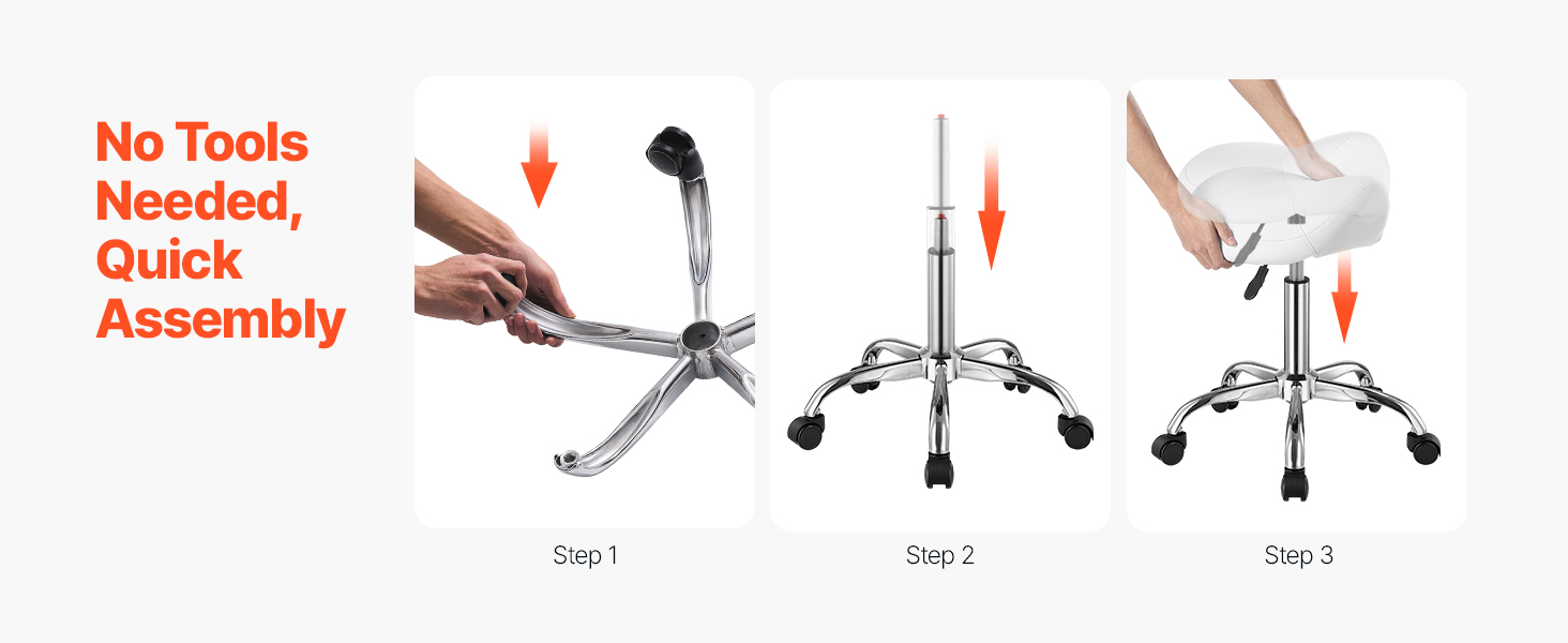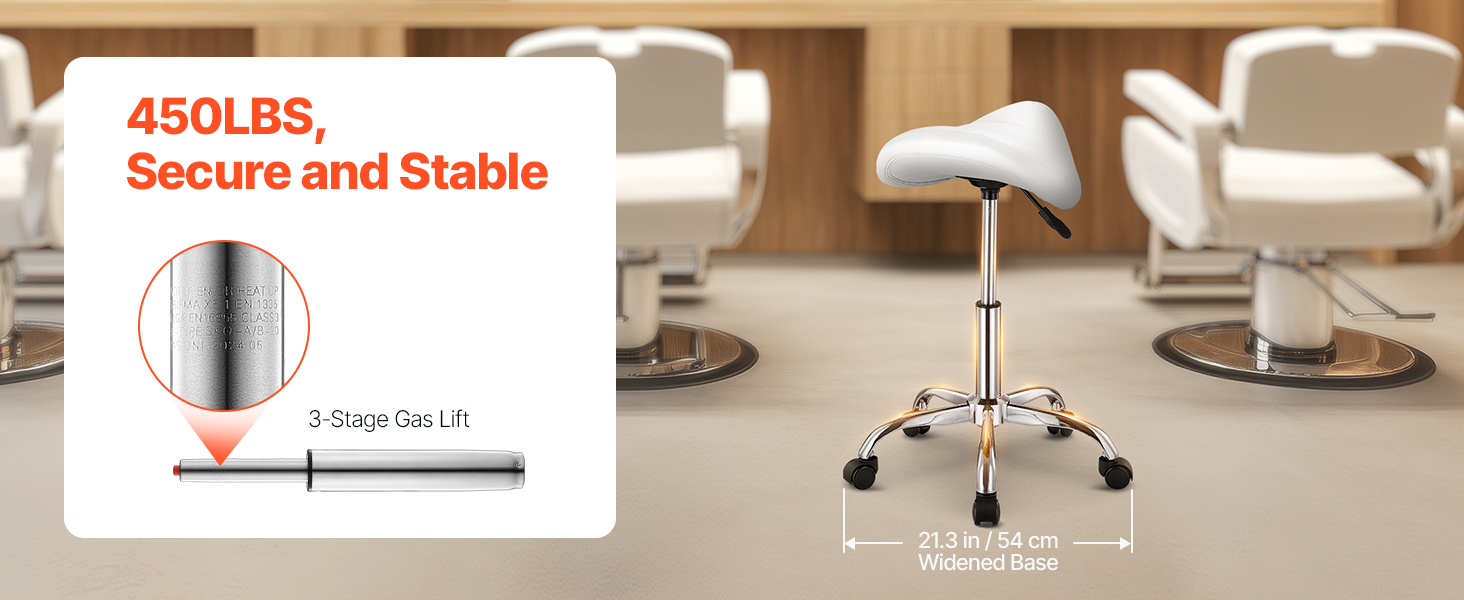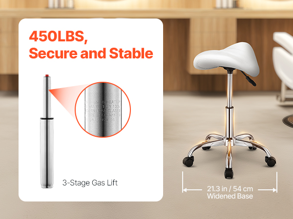 This office stool base has a 21.3in / 54.9 cm diameter, with a sturdy metal structure that supports up to 450 lbs. It also features an SGS-certified three-stage hydraulic gas lift, ensuring durability without concern for metal bending.