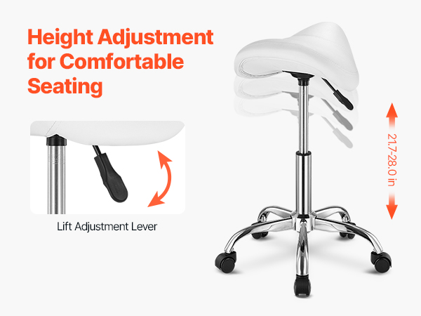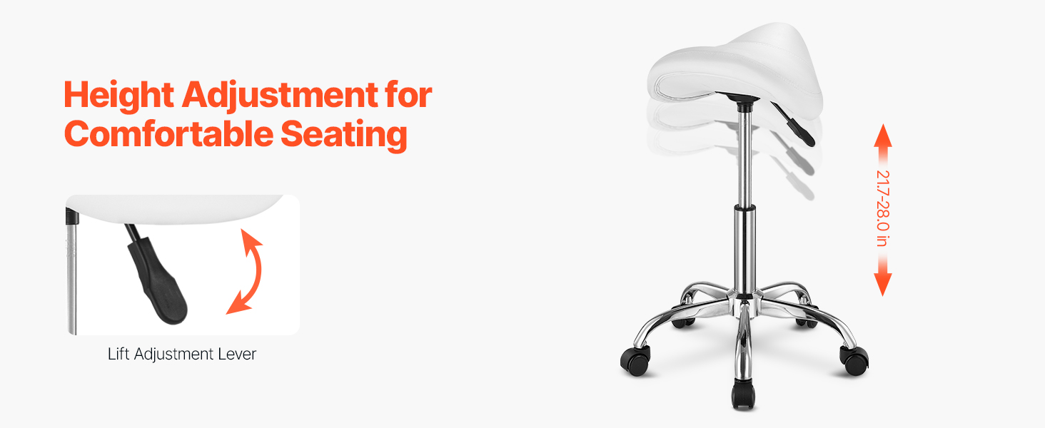VEVOR Saddle Stool with Wheels, 450 LBS Weight Capacity Ergonomic Rolling Stool, Height Adjustable Thickened PU Leather Swivel Saddle Chair for Salon, Spa, Massage, Tattoo, Clinic, White