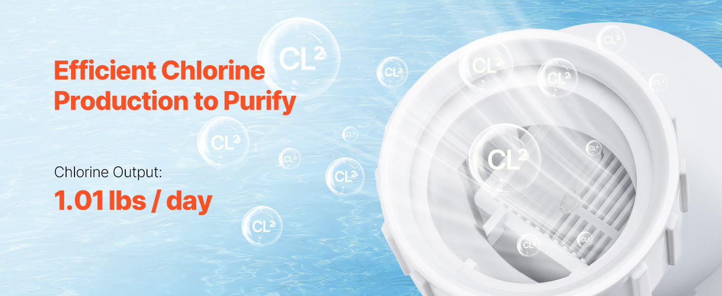• Высокоэффективная очистка: Наш хлоратор для бассейнов с соленой водой может производить до 1,01 фунта в день, что идеально подходит для бассейнов объемом до 25 000 галлонов. Благодаря высококачественным титановым пластинам и прочному корпусу из АБС-пластика он долговечен и устойчив к коррозии, продлевая срок службы оборудования для вашего бассейна.