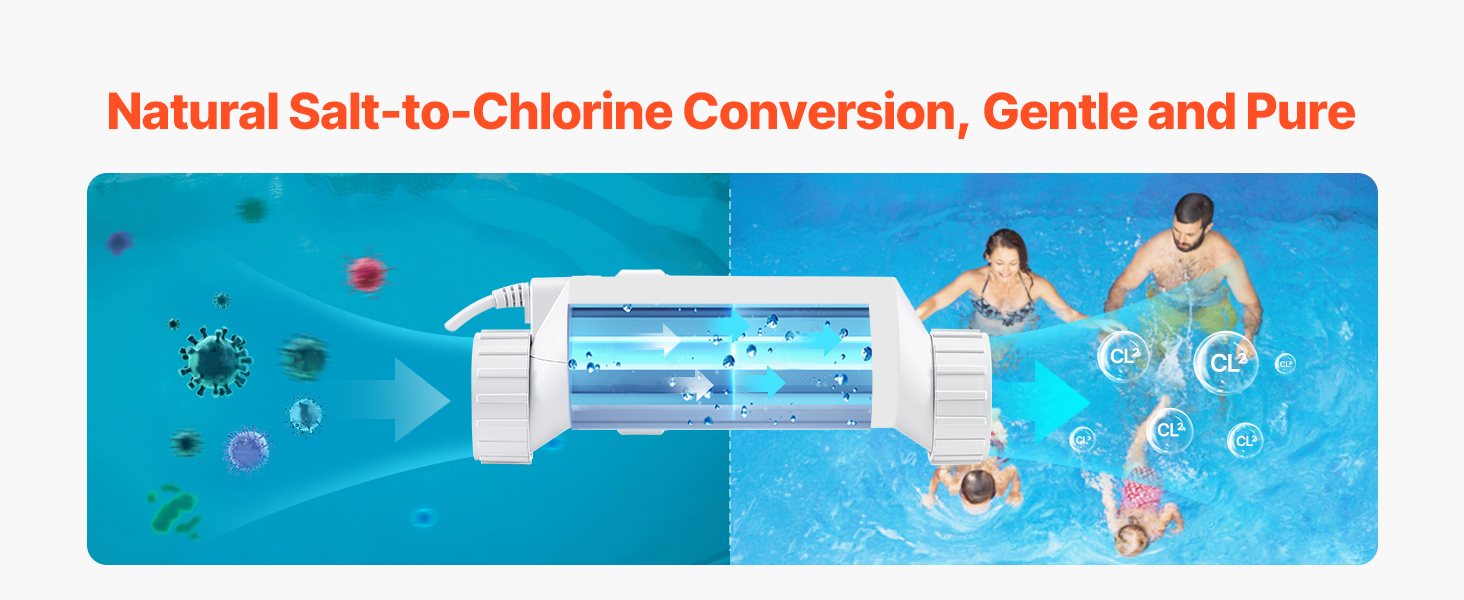 • Простое обслуживание воды в бассейне: Используя передовую электролитическую технологию, система хлорирования соли для бассейна вырабатывает хлор из соли и титана, устраняя необходимость в дорогостоящих таблетках хлора. Попрощайтесь с раздражением глаз и неприятными запахами от традиционных бассейнов с хлором, наслаждаясь более щадящим плаванием.