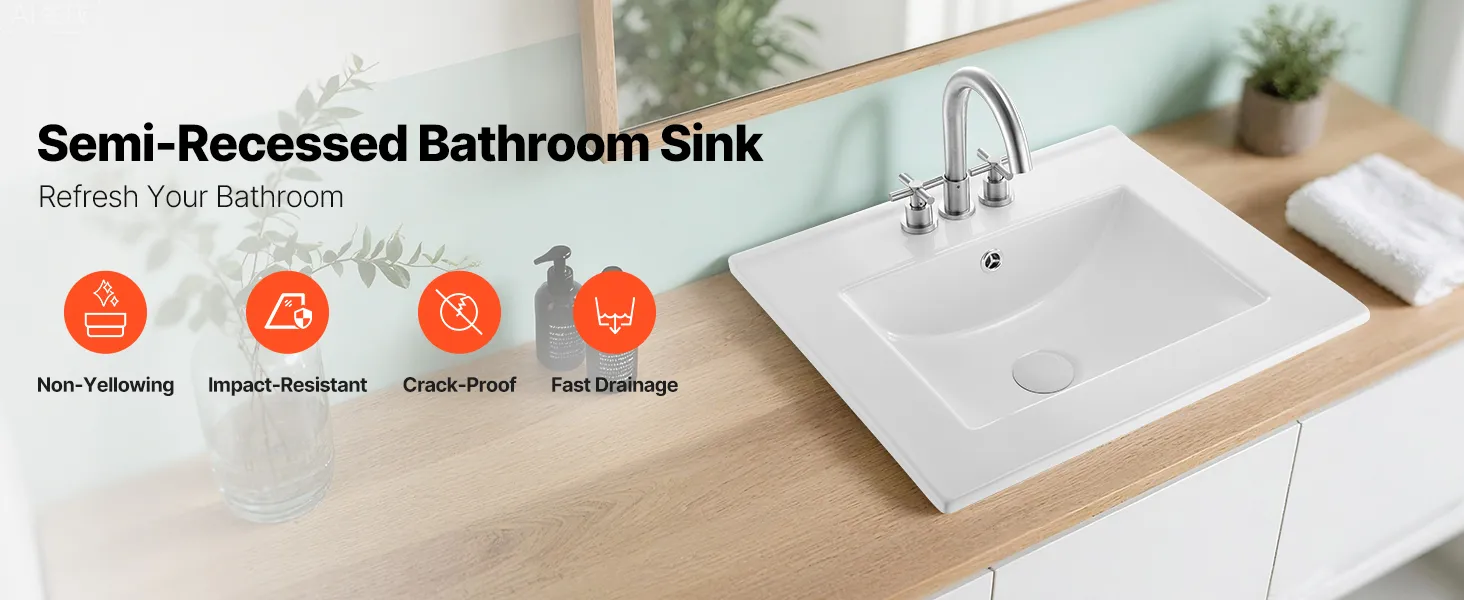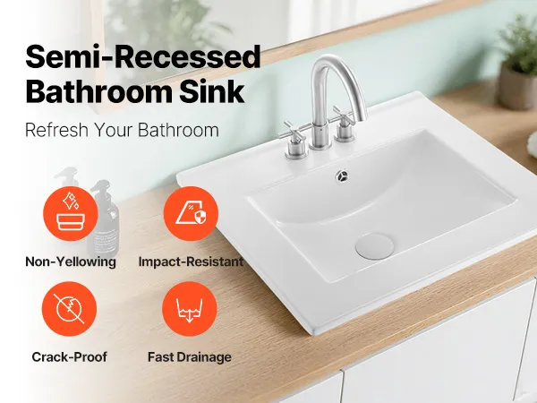 Anti-Yellowing Semi-Recessed Bathroom Sink