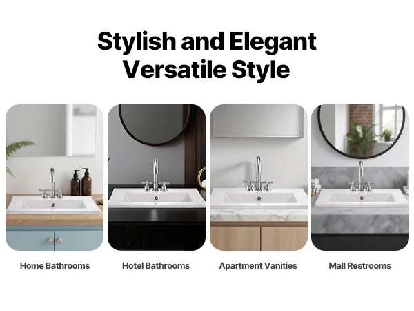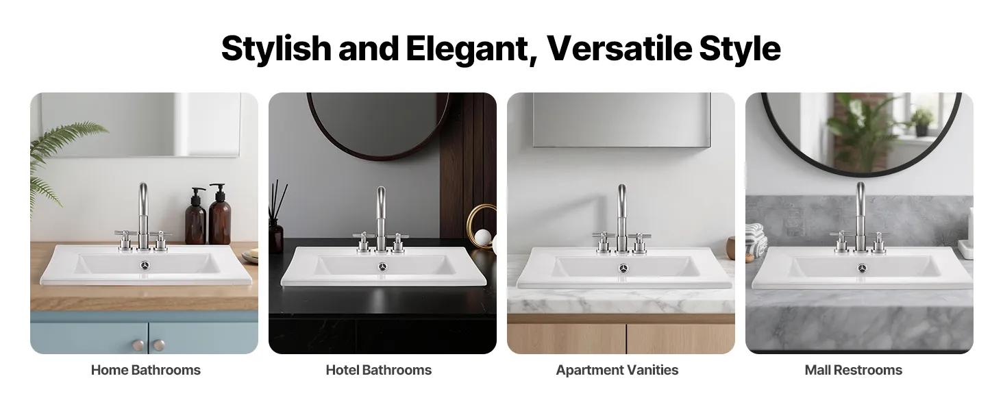 Our bathroom drop in sink features a stylish, elegant look, blending seamlessly with any space—from compact apartments and hotels to luxury homes and malls. Add a touch of sophistication for various home styles.