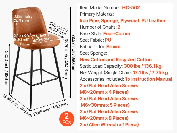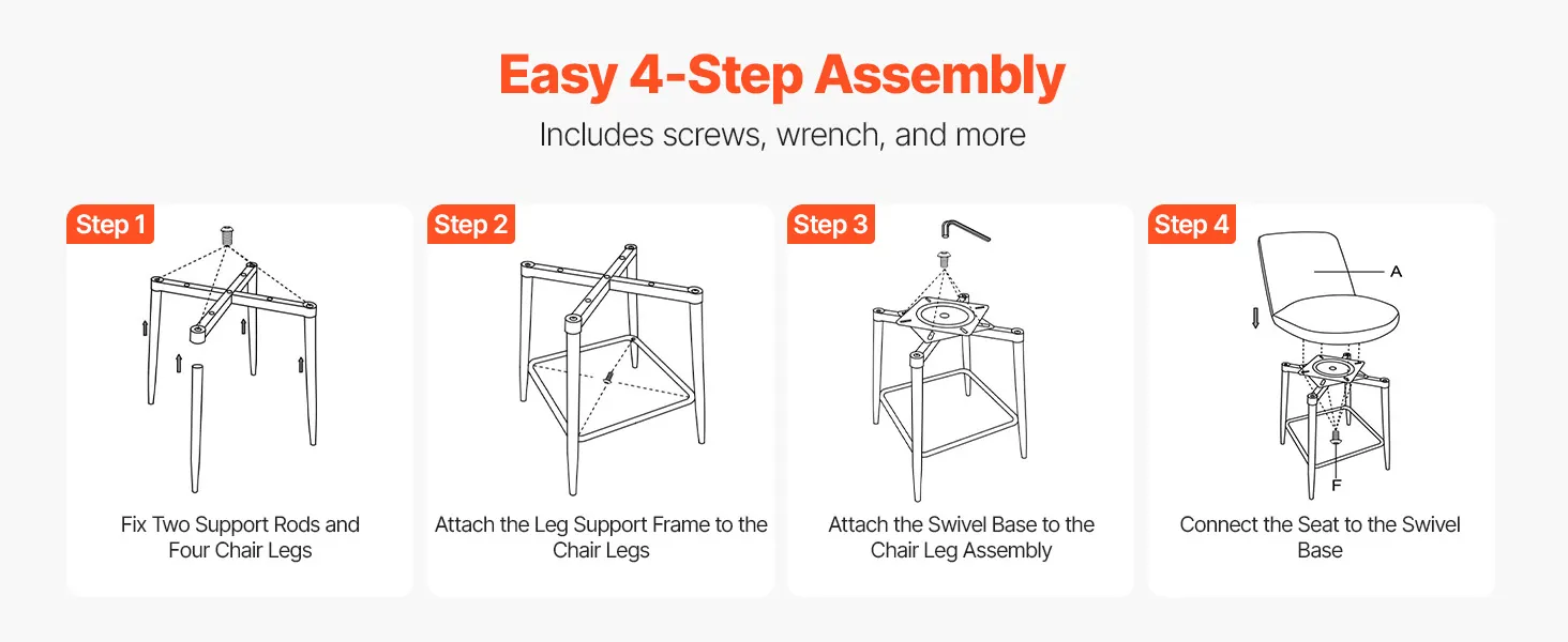 • Easy to Assemble and Maintain: The counter height stools use waterproof PU leather; A simple wipe with a dry cloth will keep it spotless. Comes with installation tools, assembly is simple and beginner-friendly, allowing quick setup