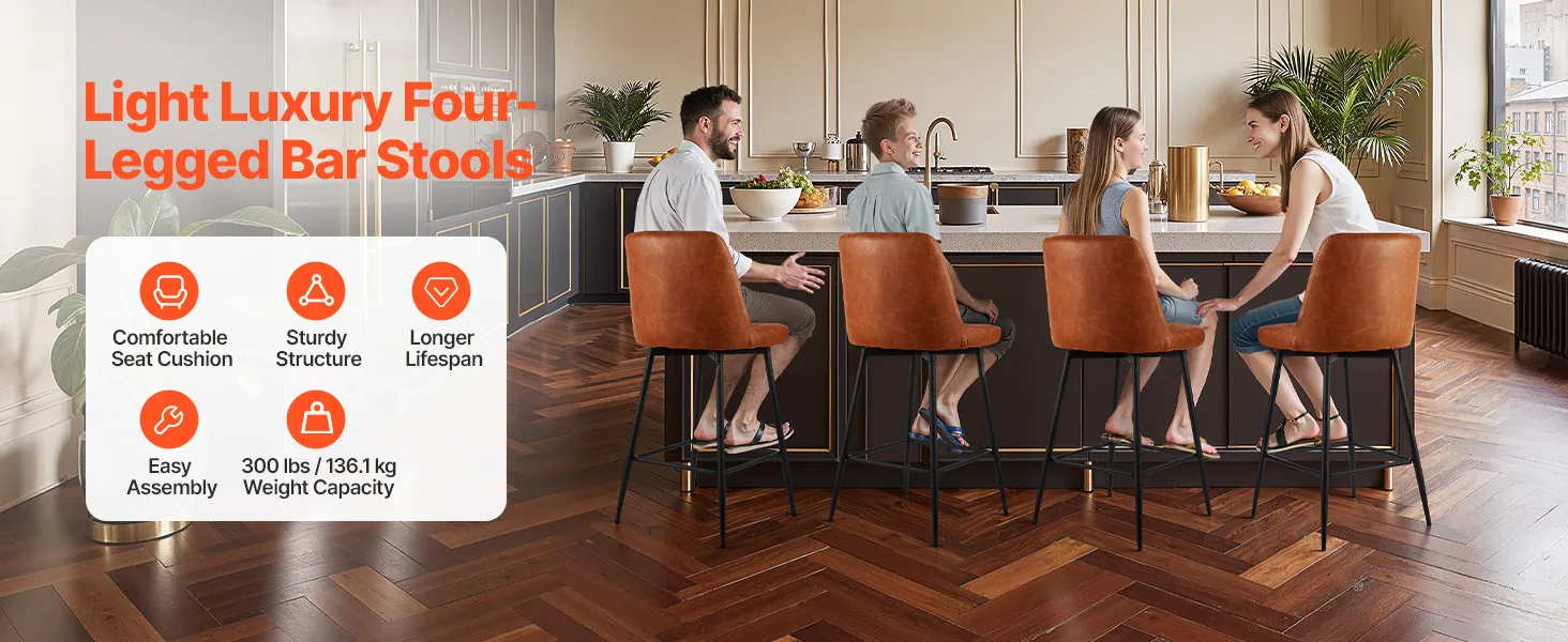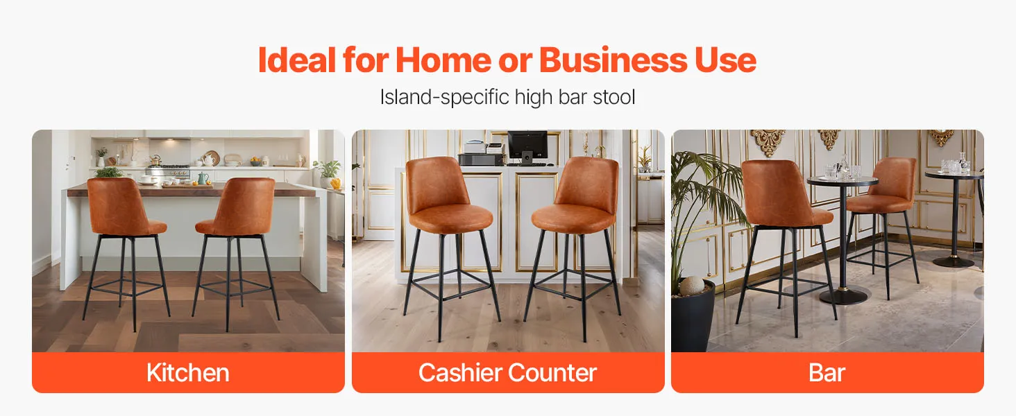 • Light Luxury and Versatility: The vintage brown PU leather combined with the streamlined curved backrest, suitable for both home and commercial spaces. The standard seat height fits various regular bar counters and kitchen islands
