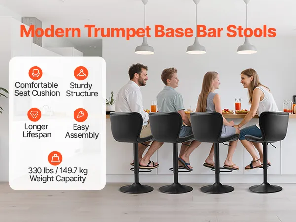 • Comfortable and Rotatable: Equipped with a 360° swivel design, the barstool allows easy interaction. The seat cushion is filled with high-density composite foam and covered in PU leather. The thick backrest fits comfortably to your back