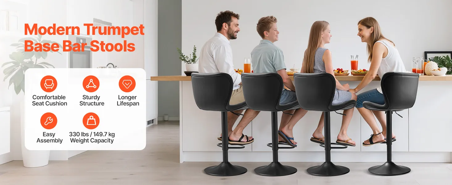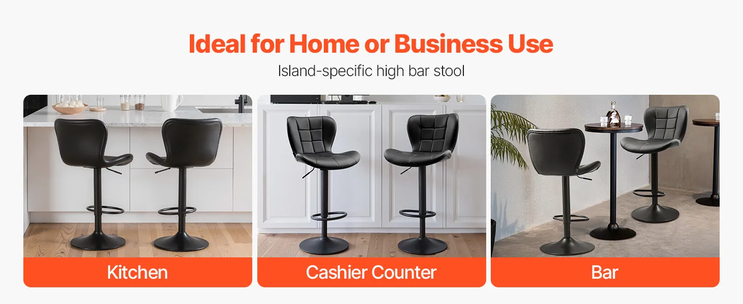 • Light Luxury and Versatility: The black PU leather combined with the streamlined curved backrest, suitable for both home and commercial spaces. The standard seat height fits various regular bar counters and kitchen islands