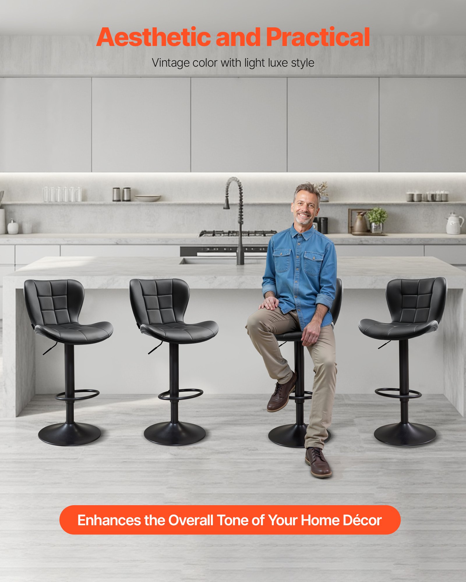 Набор из 2 барных стульев VEVOR, PU кожа, поворотные, регулируемая высота 59–80 см, со спинкой и подножкой, черные