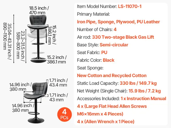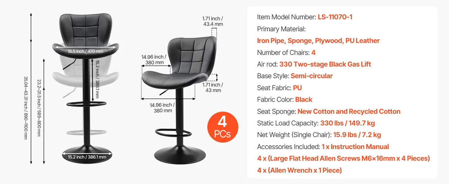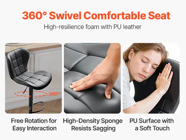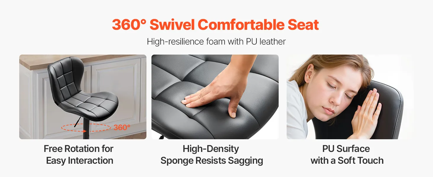 The island barstool is filled with high-elastic composite foam for a thick, comfortable seat that doesn't create pressure points during long sitting periods. The 360° swivel design makes conversations more convenient and comfortable.