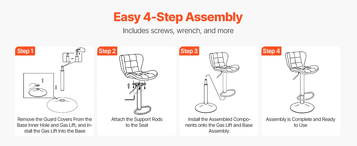 You can complete the assembly in 4 simple steps without the need for a power drill. It comes with necessary tools for easy assembly, saving you time and effort. Even beginners can easily complete the setup and enjoy a hassle-free experience.
