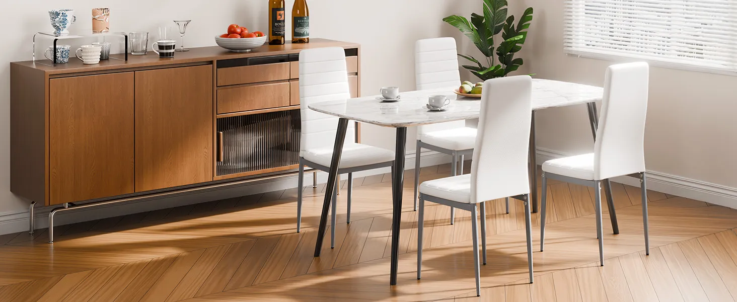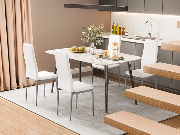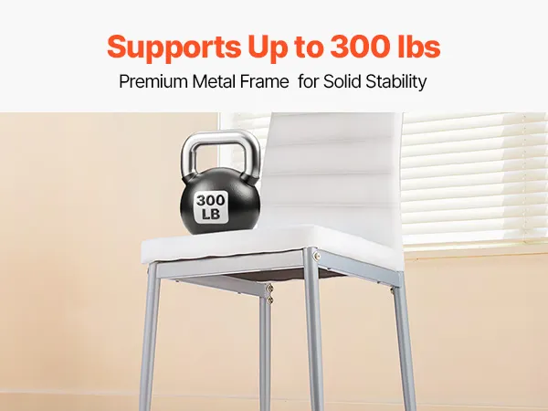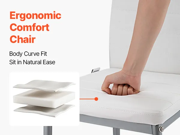 VEVOR Modern Dining Room Accent Chairs Set of 6, Upholstered Leather Side Chair for Dining Tables, Space-Saving Kitchen Table Chair with Thick Cushions and Metal Legs, White