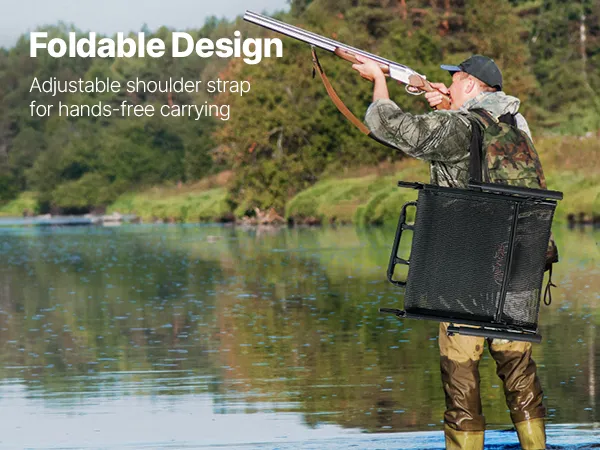 A: This hunting chair features a reinforced steel tube frame with a maximum tested weight capacity of 300 lbs. It's designed for demanding outdoor use like camping, fishing, and hunting. The sturdy frame and non-slip feet ensure stability even on uneven ground.