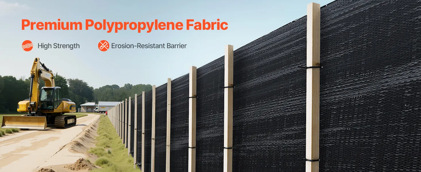 This silt fence fabric is designed to block dust, sand, and sediment, preventing environmental contamination. Made from high-strength polypropylene, it withstands harsh weather and construction site conditions. With a 500FT roll design, it's ideal for construction sites, roadwork, farms, and more.