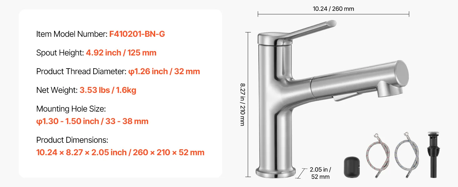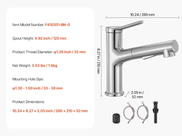 • Easy Installation: This sink faucet kitchen is equipped with all necessary components, including the faucet, water hoses, drain, base plate, and hex wrench. With everything included, it ensures a smooth, simple installation process without the need for extra parts