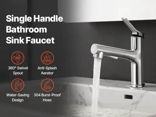 VEVOR Смеситель для раковины с одной ручкой, выдвижной, матовый никель, 360° распылитель, нержавеющая сталь, без свинца, 1/3 отверстия