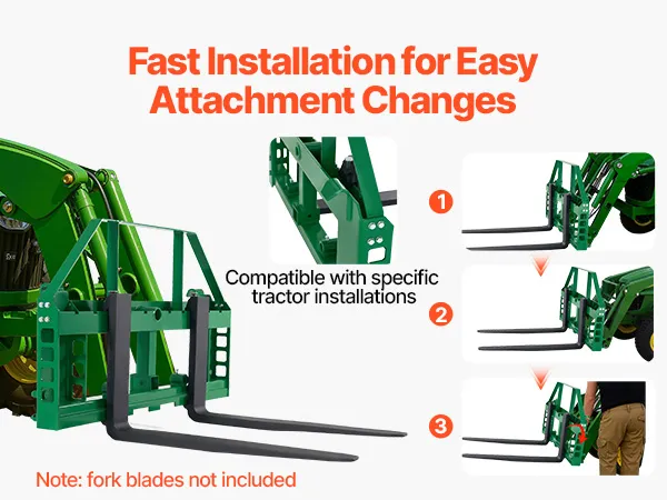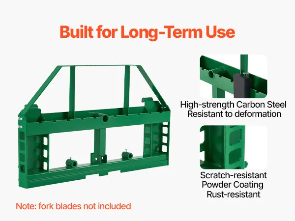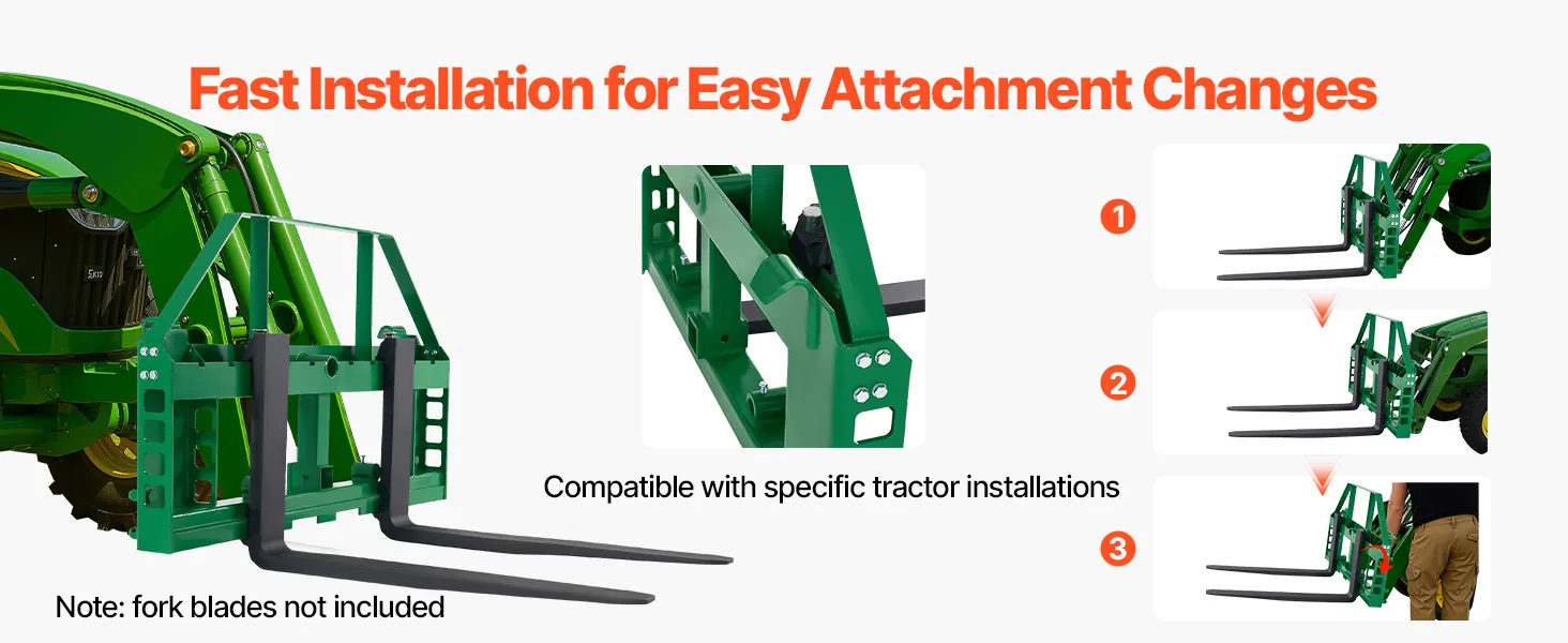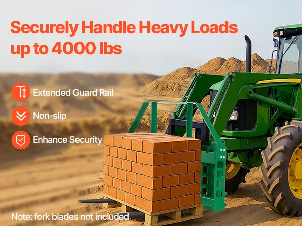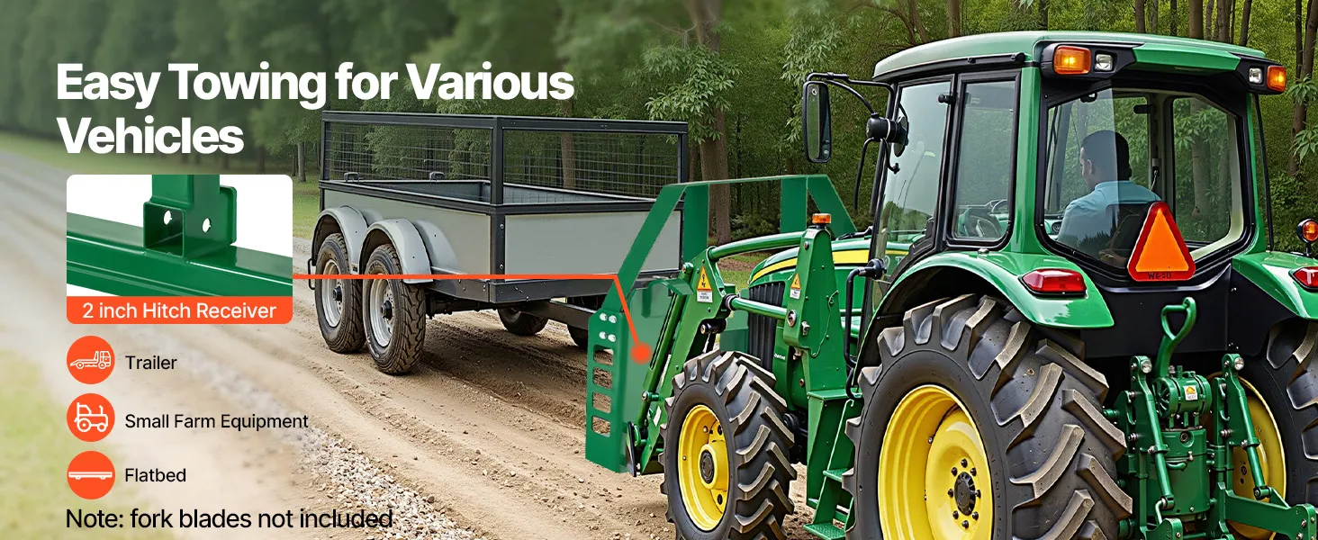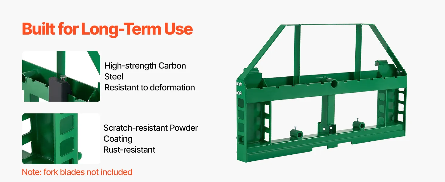 This 4000 lbs-rated pallet forks frame is designed for the John Deere tractor series. Ideal for moving hay bales, building materials, and more on farms, gardens, or construction sites. Efficient and reliable for heavy-duty tasks.