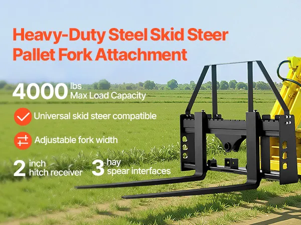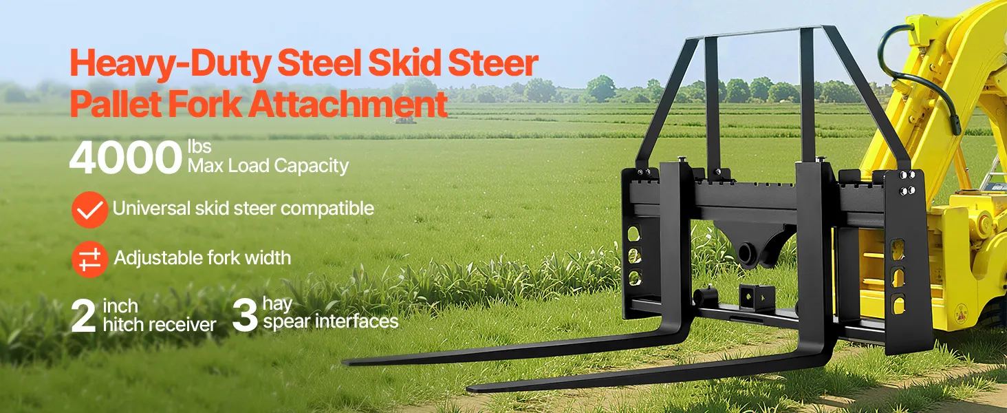 • Quick Installation: No tools needed! The universal pallet forks frame attachment fits most loaders and tractors, including New Holland, Bobcat, and Kubota. Easily switch attachments for different tasks and keep the work going