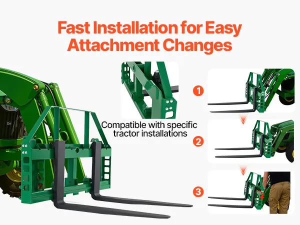 Featuring a quick-install bracket, our quick attach pallet forks are designed for use with the John Deere tractor series, saving you time and effort.