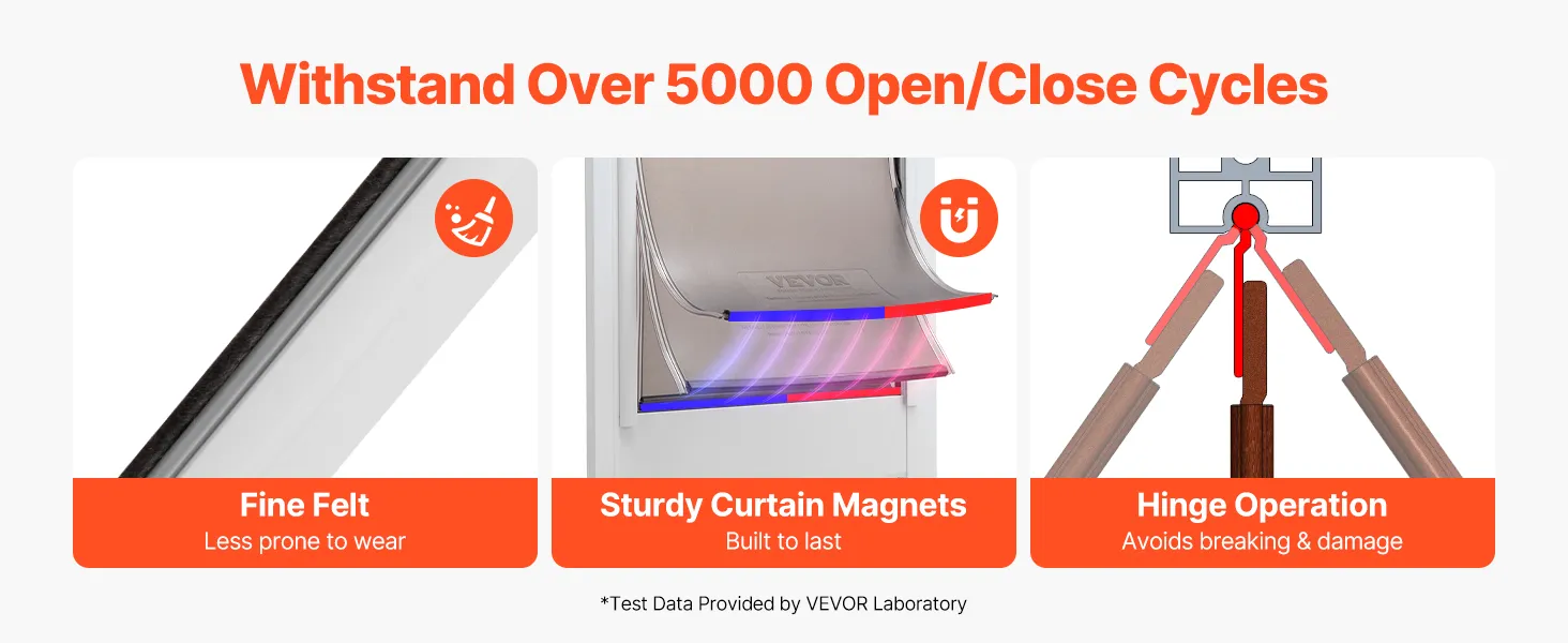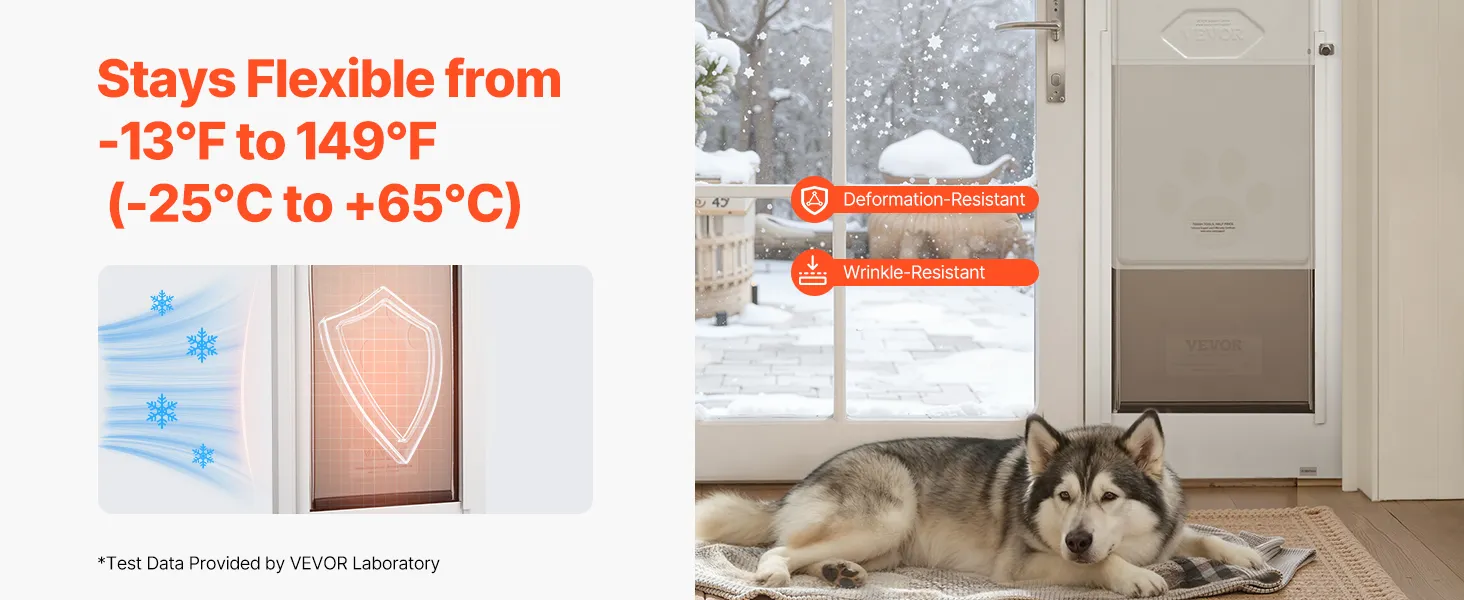 Designed with your pet's comfort and convenience in mind, this doggie door for sliding glass door ensures seamless access while maintaining the interior harmony of your home. The advanced hinge structure enhances both stability and durability preventing breakage even in low temperatures.