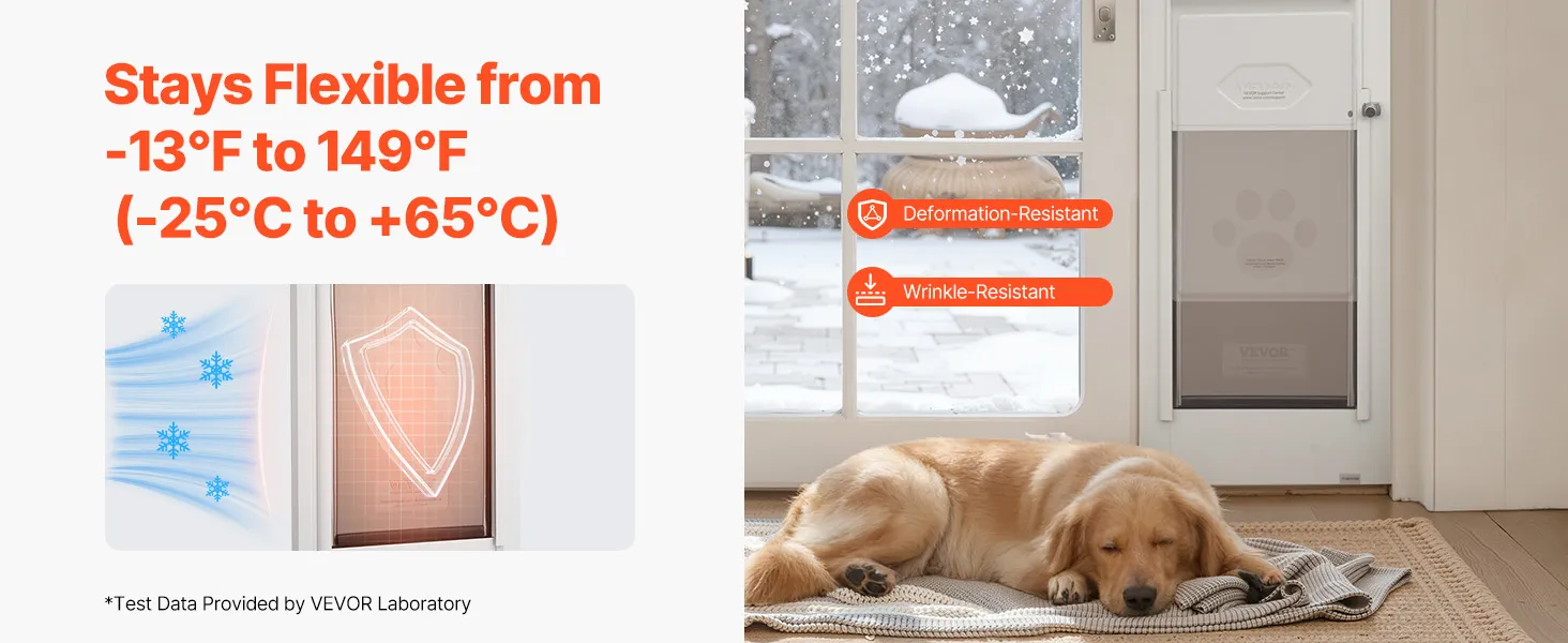 Designed with your pet's comfort and convenience in mind, this doggie door for sliding glass door ensures seamless access while maintaining the interior harmony of your home. The advanced hinge structure enhances both stability and durability preventing breakage even in low temperatures.
