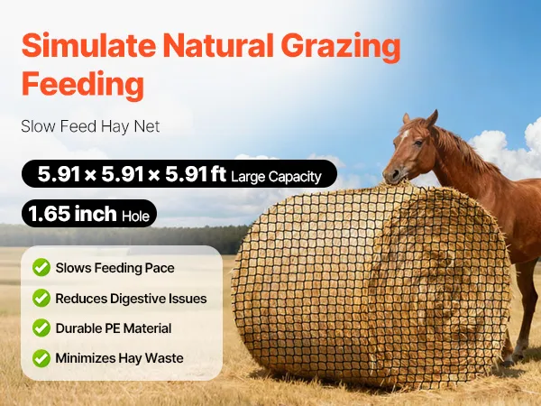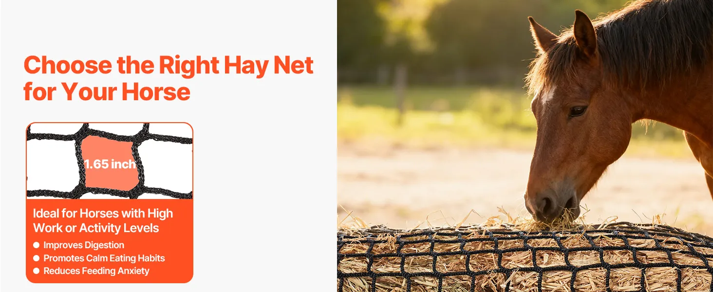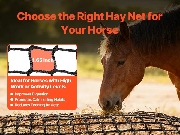 This 1.65-inch round bale net is designed for high-energy, active horses. It controls feed pace while ensuring sufficient hay intake to meet energy needs after intense training or work.