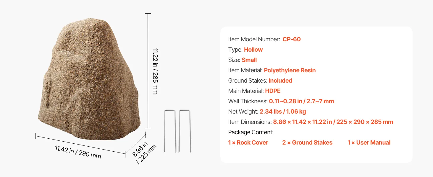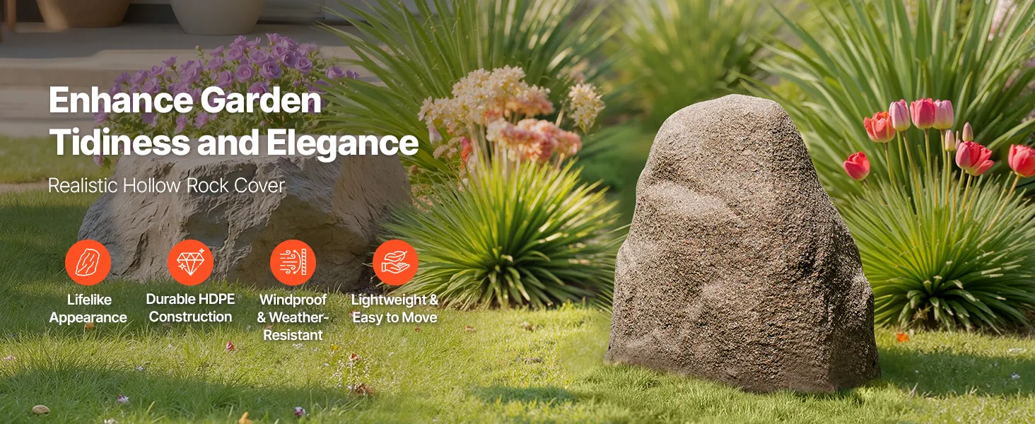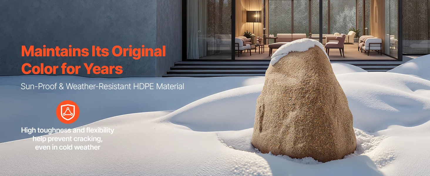 Crafted from high-density HDPE, this rock cover is sun-resistant, fade-proof, and crack-resistant even in harsh winter conditions. Our faux rock cover maintains a neat appearance for long-term outdoor use—reliable and durable.