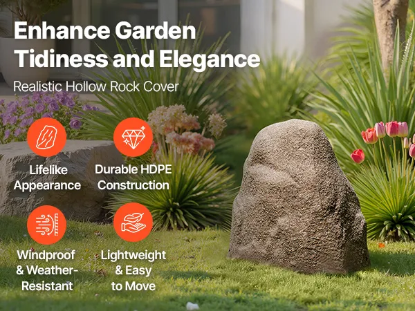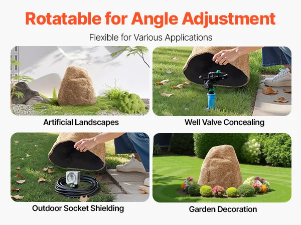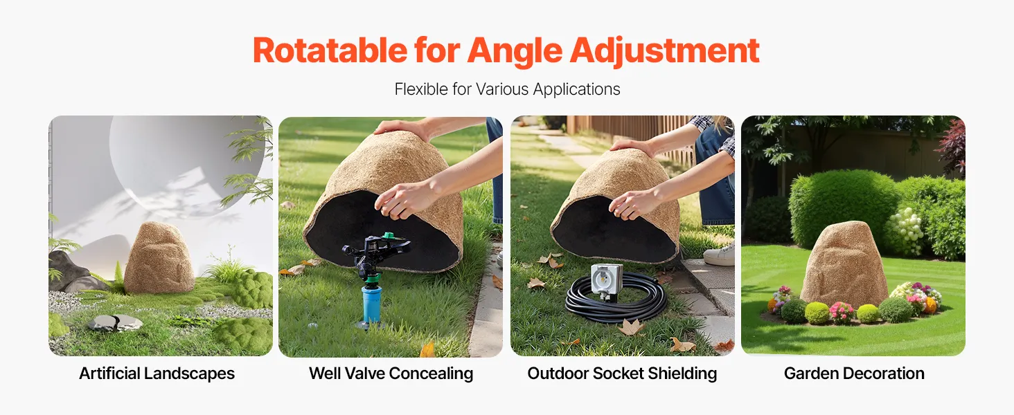 The angle can be flexibly rotated and adjusted according to your needs. This landscape rock cover is ideal for manhole lid concealing, small pumps, electrical boxes shielding, and garden decoration. Multi-purpose design make it practical and stylish.