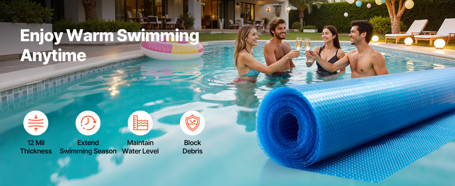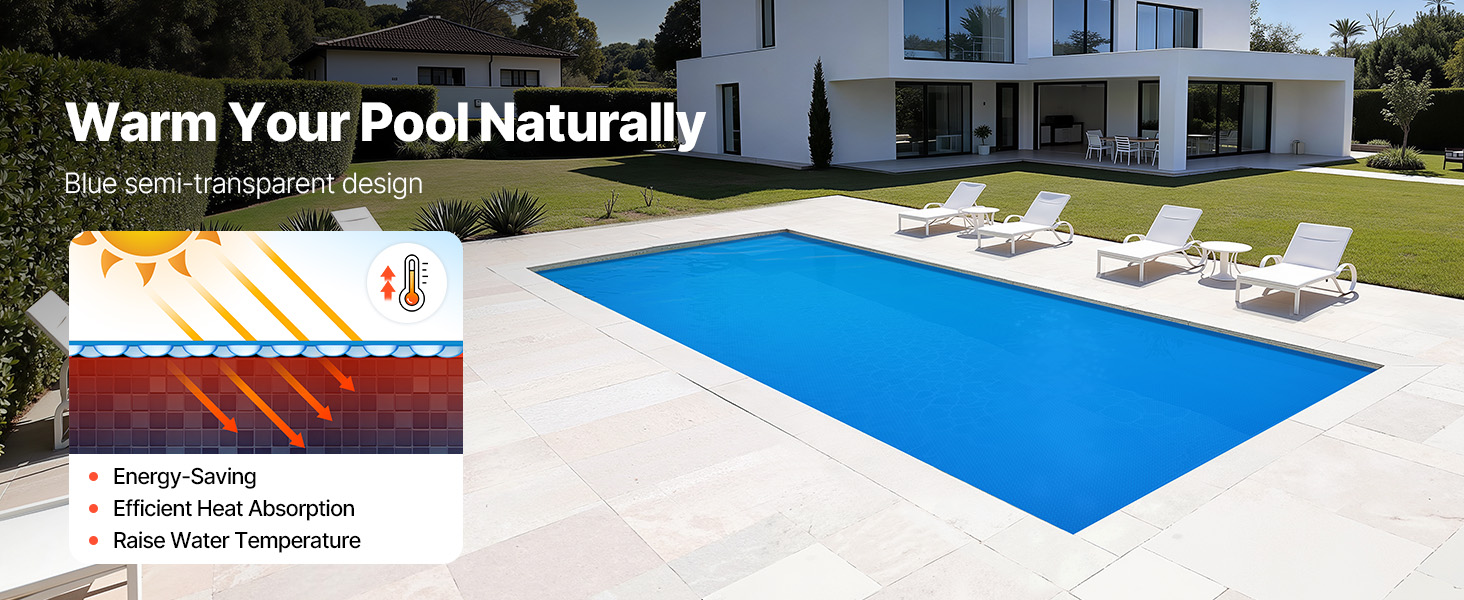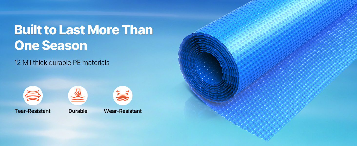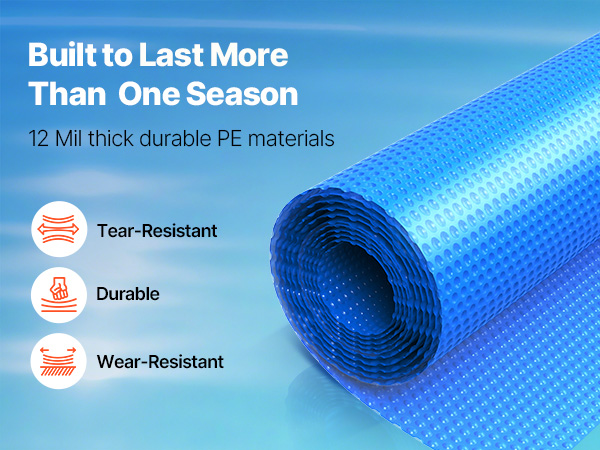 • Simple Pool Maintenance: With the VEVOR heat retaining solar cover, your pool stays clean by blocking debris, leaves, and small animals. It’s easy to use, and when not in use, it can be conveniently rolled up and stored, saving space and keeping your pool surface clear
