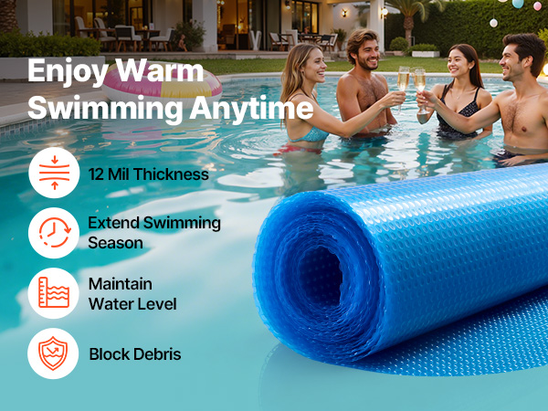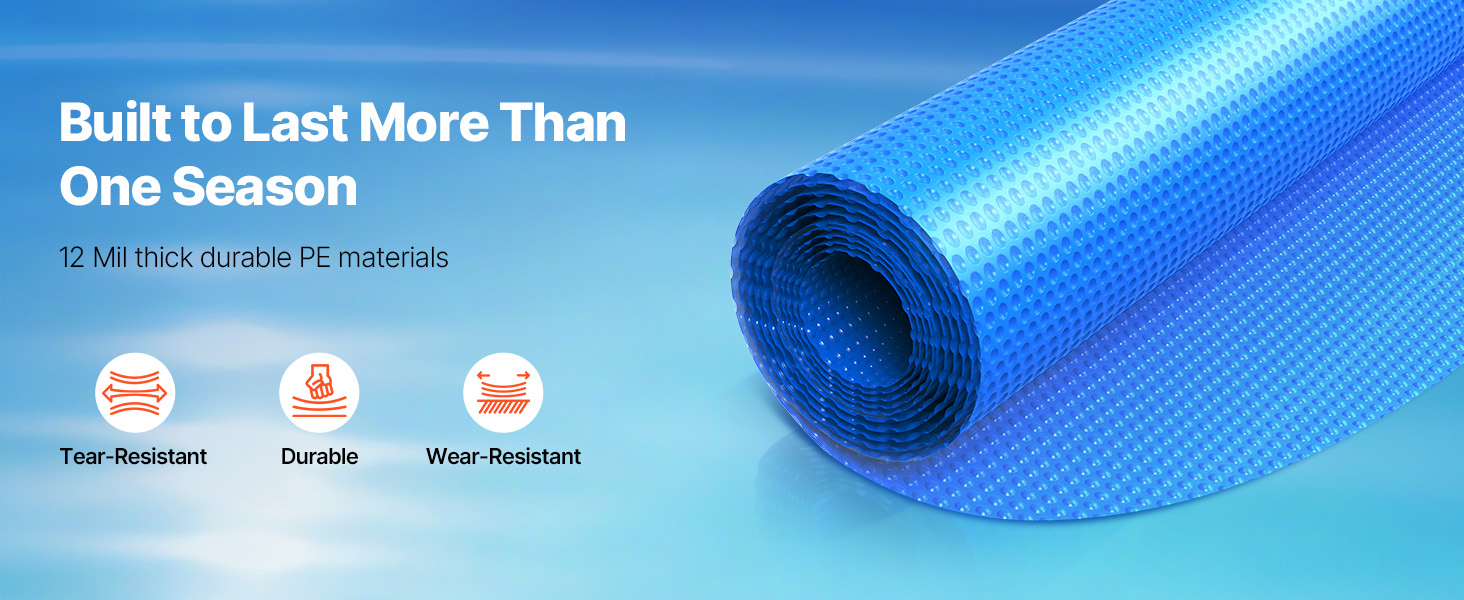 Crafted from 12 Mil thick material, this solar pool cover is built for durability. It provides excellent heat insulation while withstanding the harsh outdoor conditions, ensuring long-lasting performance without tearing or damage.