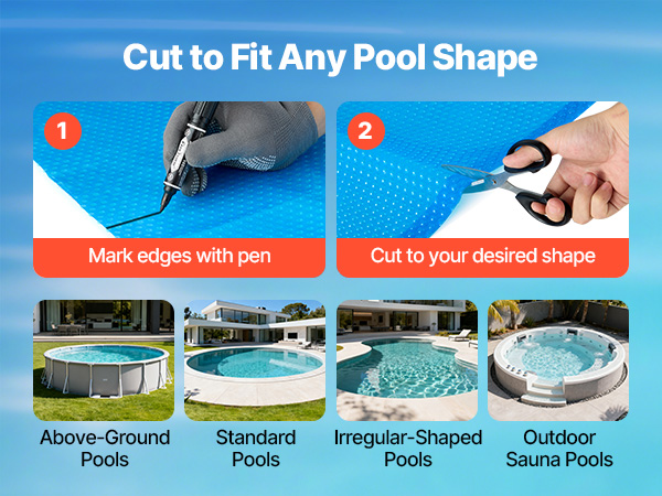 The solar pool cover is easy to cut and can be customized to fit the shape of your pool. Whether you have a round, oval, or irregular pool, this cover provides a flexible solution to suit your needs.