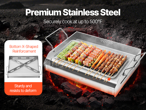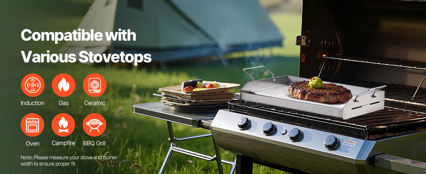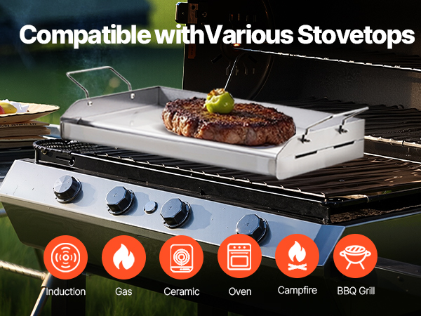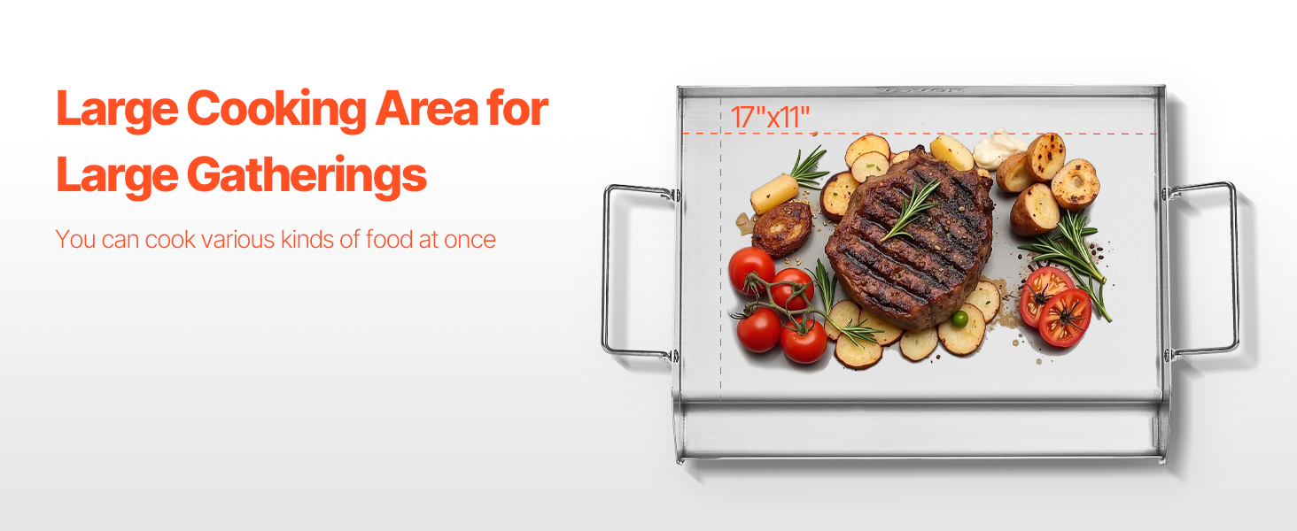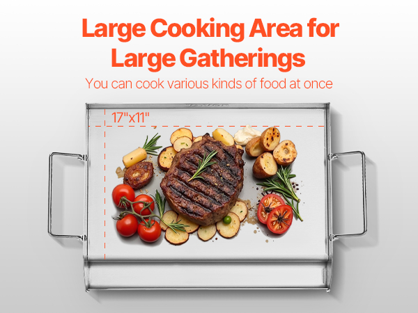VEVOR Stainless Steel Griddle, 17x13 inch Universal Flat Top Rectangular Plate, Gas Grill Griddle for BBQ Grill, Teppanyaki, Portable Family Cookware with Handle, for Camping Tailgating Party