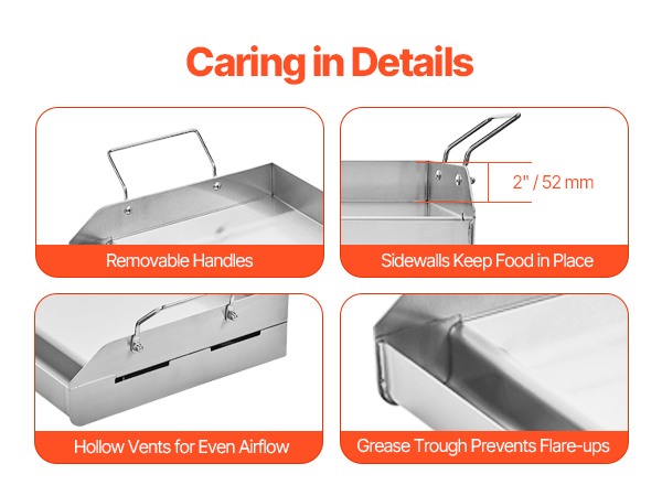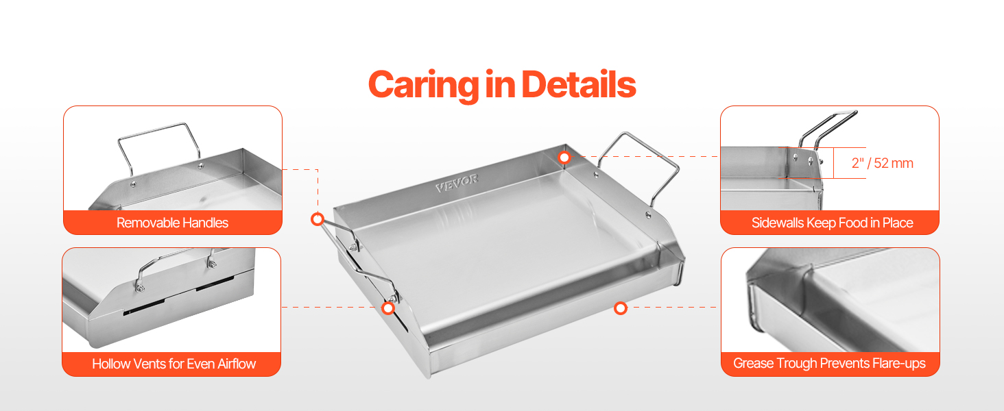 Q1: Совместима ли эта сковорода с большинством плит?A1: Да! Наша сковорода разработана таким образом, чтобы быть совместимой с большинством плит, включая электрические, газовые и индукционные. Он также отлично подходит для приготовления пищи на уличных грилях или походных печах, что делает его универсальным как для приготовления пищи в помещении, так и на открытом воздухе.В2: Легко ли чистить сковороду-гриль?А2: Да! Противень имеет антипригарное покрытие, которое упрощает очистку. Просто протрите его мягкой губкой или тканью после использования. Для более стойких пятен замочите его на несколько минут в теплой мыльной воде, и большая часть сойдет с минимальными усилиями.Вопрос 3: У меня газовый гриль с 6 конфорками. Любые рекомендации по предотвращению деформации?A3: Сковородка специально сконструирована для предотвращения деформации. На нижней стороне имеются укрепляющие поперечины. Не устанавливайте сковородку выше 500 °. Советы: Перед добавлением продуктов дайте сковороде медленно разогреться до умеренной температуры.