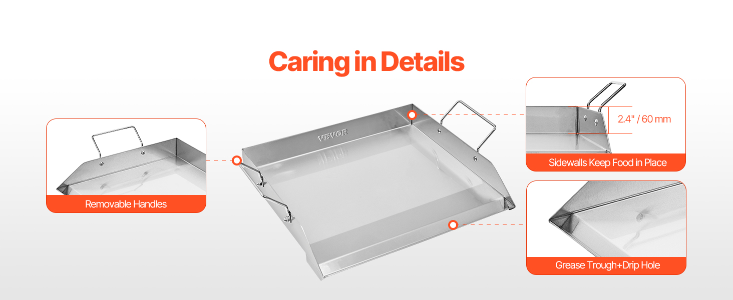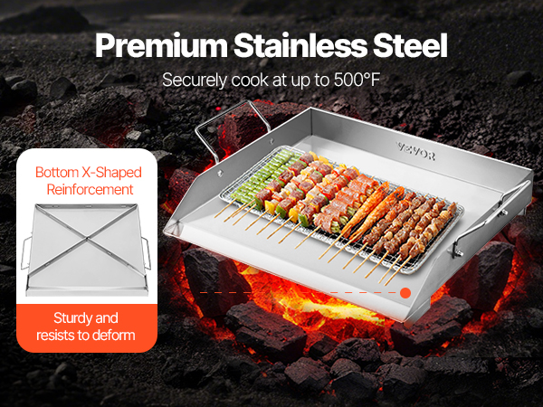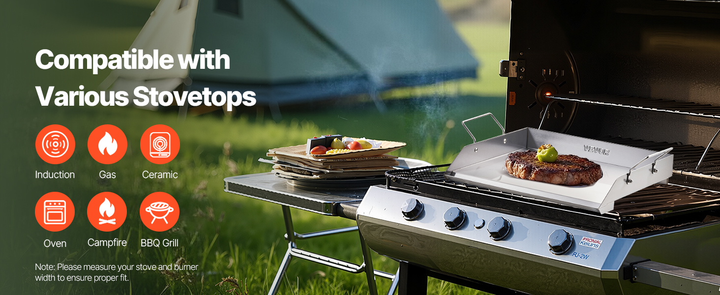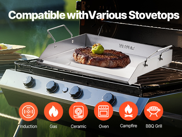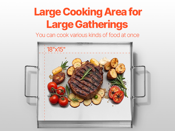 VEVOR Stainless Steel Griddle, 18x16 inch Universal Flat Top Rectangular Plate, Gas Grill Griddle for BBQ Grill, Teppanyaki, Portable Family Cookware with Handle, for Camping Tailgating Party