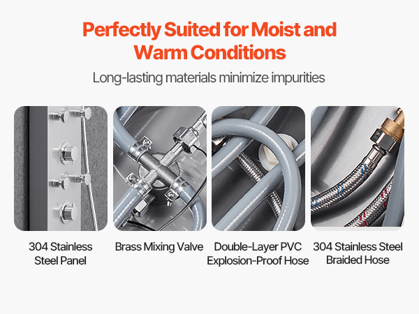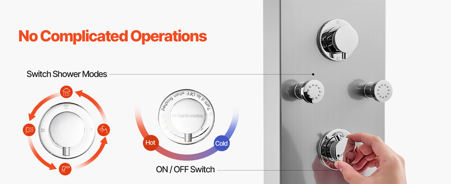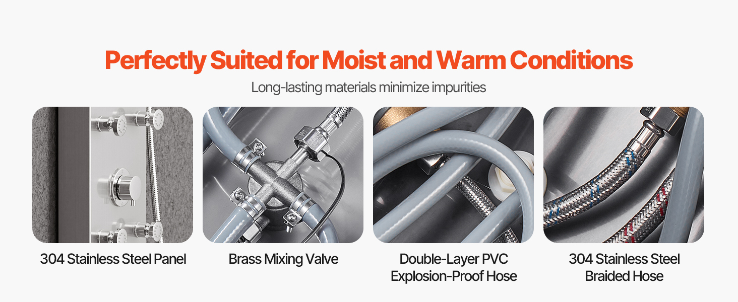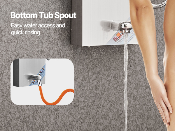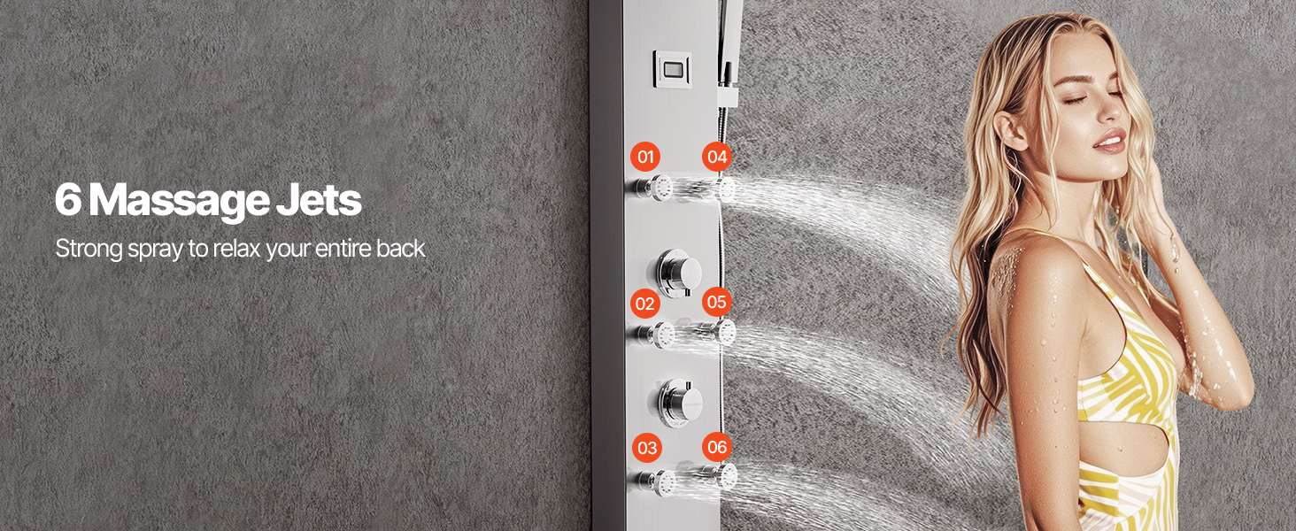 VEVOR Shower Panel Tower System with Rainfall Shower Head, LED, 49 in Brushed Stainless Steel Shower Column, 4-Function Faucet, Wall-Mount Rain Massage System with 6 Body Jets, Handheld, and Tub Spout