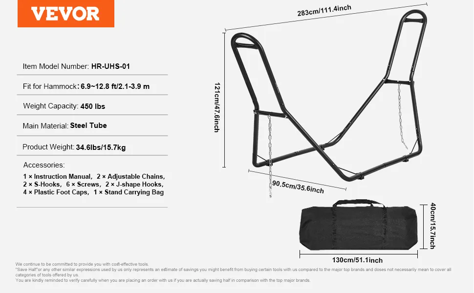 VEVOR Universal 2 Person Hammock Stand, Adjustable Heavy Duty 450 lbs Capacity Hammock Stand Fits 6.9-12.8 ft Hammocks for Outdoor and Indoor Portable Hammock Stand with Chain, Hook, and Carrying Bag
