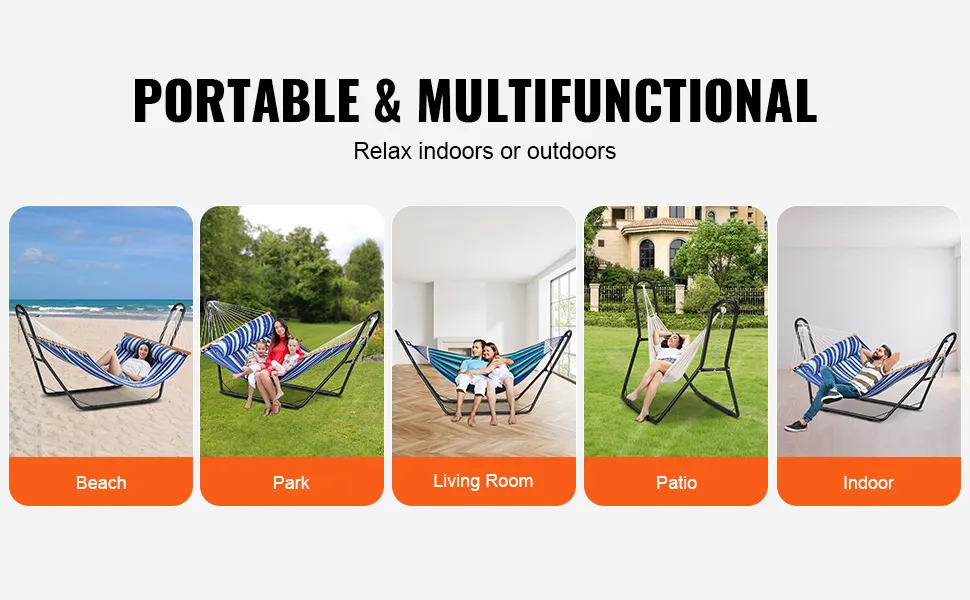 Наша подставка для гамаков на улице подходит для одноместных и двухместных гамаков длиной от 6,9 до 12,8 футов (2,1-3,9 м), что идеально подходит для личного отдыха или расслабления в кругу близких. Он подходит для различных типов гамаков, включая бразильские, изогнутые и с перекладинами.