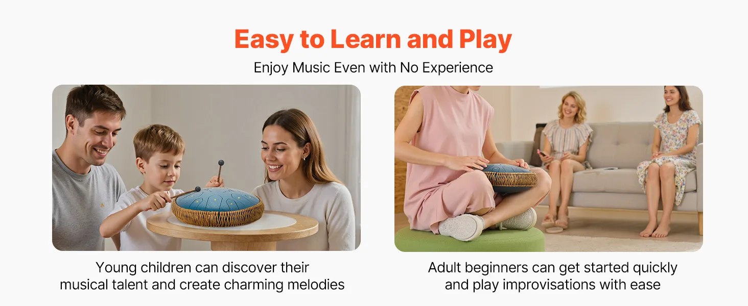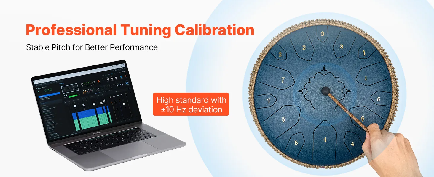 Our tongue drum is precisely tuned by professional tuners for accurate note. It ensures the played melody is harmonious and beautiful. Combined with premium materials, the pitch remains stable and is not easy to deviate with long-term use.