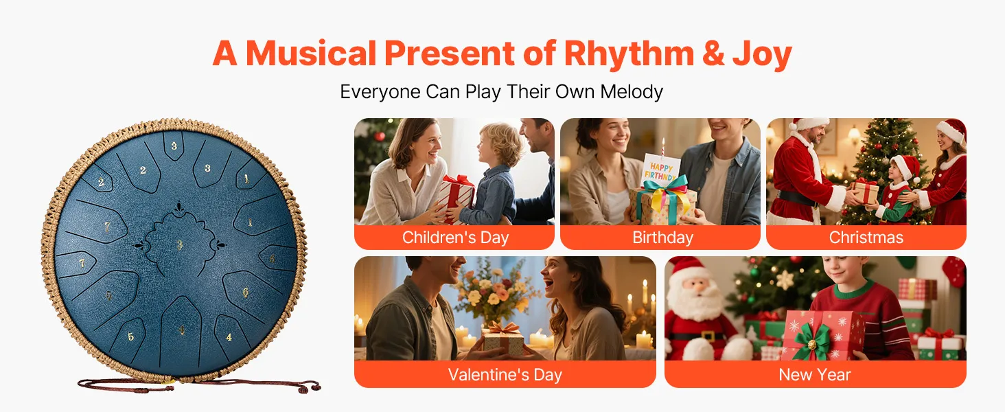 Our steel drum produces an ethereal and pure tone to heal the mind. It is a thoughtful choice for friends to relieve stress and find peace. For children, it sparks curiosity, nurtures musical sense, and supports early music education. Ideal present for birthdays, festivals, and anniversaries.