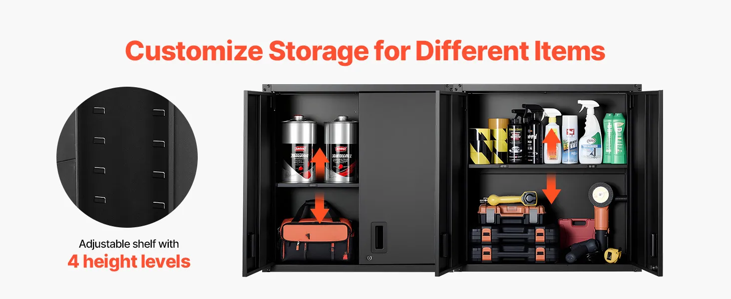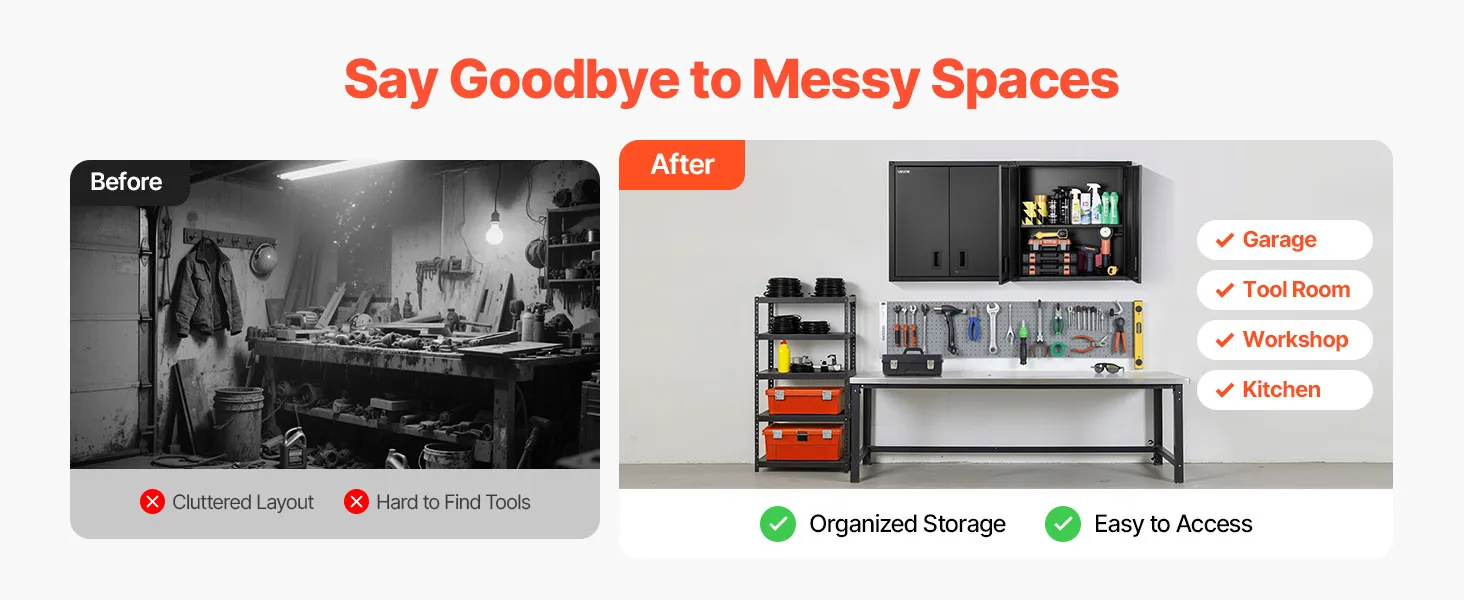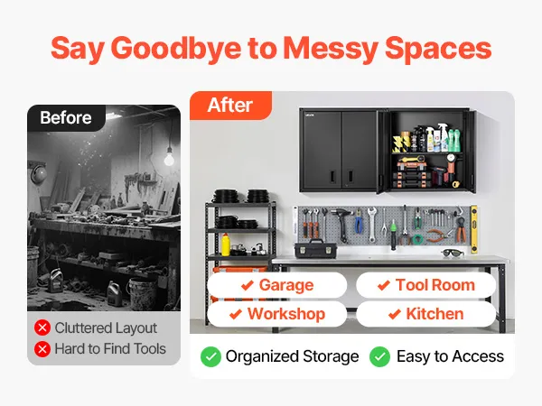Our metal wall cabinet keeps tools and supplies in order for garages, workshops, kitchens, and more. Everything stays neatly arranged and easy to grab whenever you need it.
