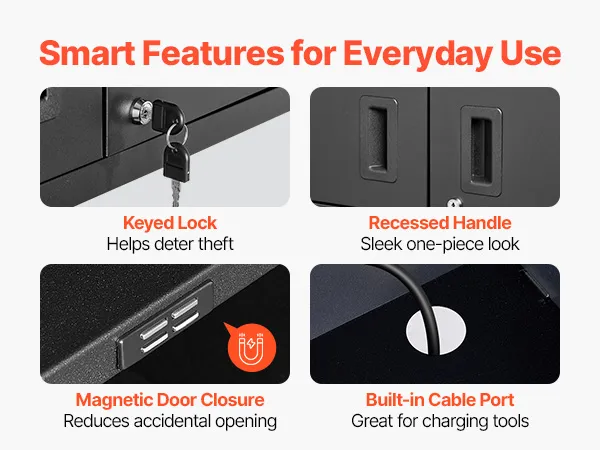 Lock valuables with the keyed door. Enjoy the sleek recessed handle, magnetic closure, and built-in cable hole for quick-grab items.