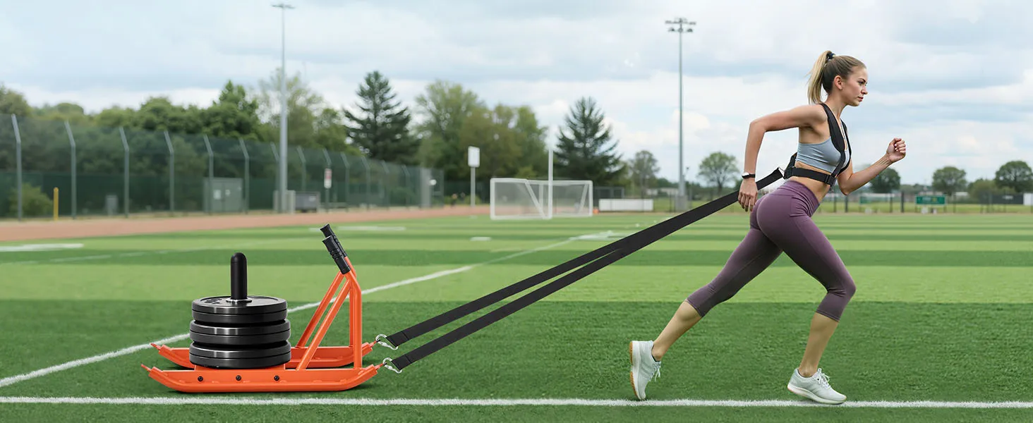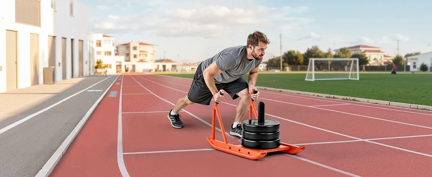 • Multiple Training Modes: This weight sled strengthens full-body muscle power and explosiveness through pushing, pulling, and dragging. Suitable for beginners and pros. Four-corner pull hooks and Y-shaped drag ensure stability