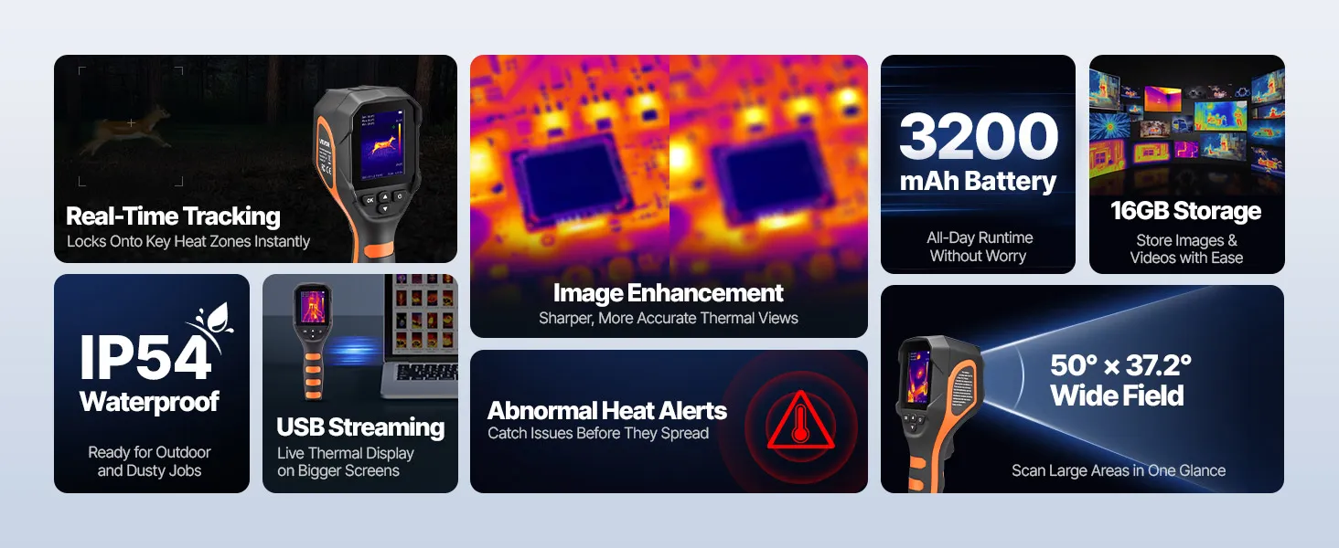 Operate in the palm of your hand with instant imaging! This handheld thermal imager quickly reveals invisible temperature differences, making complex inspections effortless.
