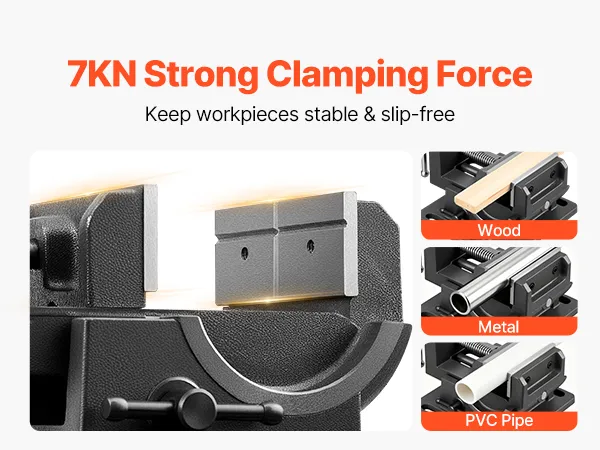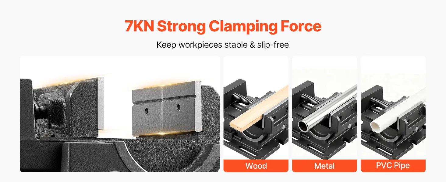 Delivers up to 7 KN of powerful clamping force, the bench vise ensures secure fixation of wood, metal, and PVC pipes.
