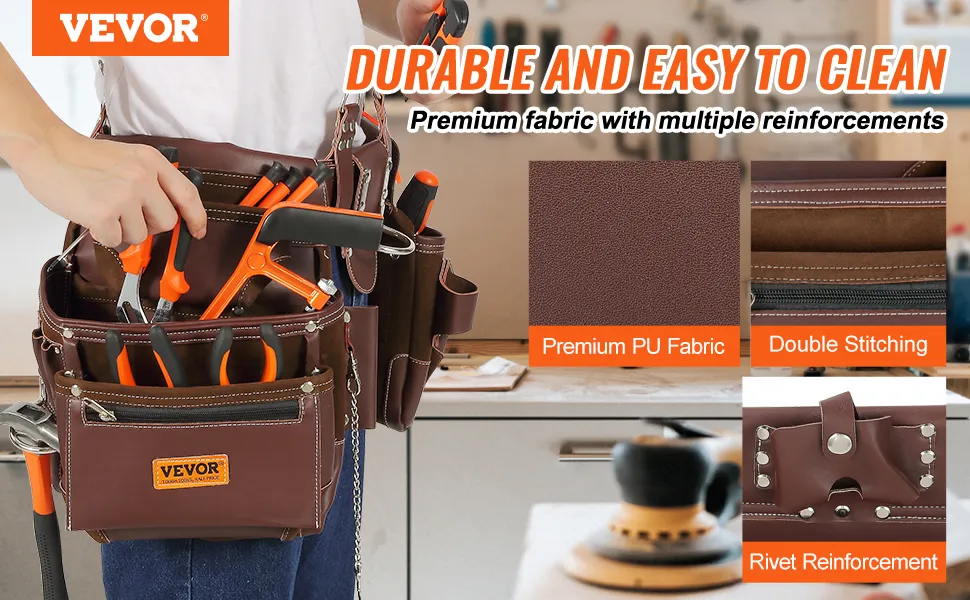 Crafted from PU, our tool belt isn't just stylish – it's a touch of luxury. Soft and comfortable to the max, you won't feel a thing even after long hours. It's all about that impeccable comfort.