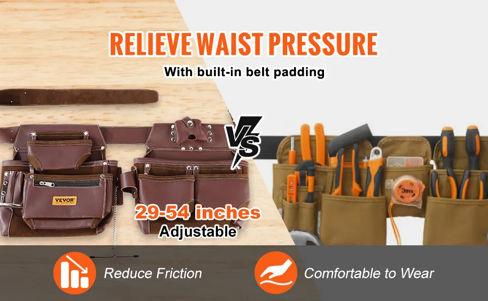 Размер нашего ремня для инструментов электрика варьируется от 29 до 54 дюймов, специально разработанного для мужчин. Мягкая подкладка снижает давление и трение, обеспечивая удобную поддержку и облегчая ношение в течение всего дня.