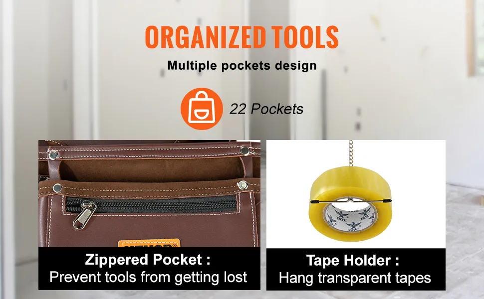 Featuring 22 pockets, our tool pouch belt gives you the ultimate organization solution. It's like a tool orchestra – screwdrivers, wrenches, pliers – all ready for your command.