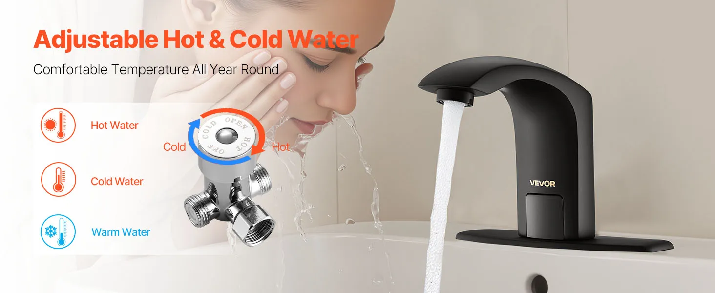 This bathroom sink faucet supports hot and cold water adjustment, delivering the ideal temperature year-round, ideal for keeping your hands comfortable in both summer and winter.