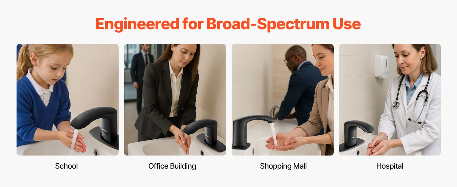 This faucet features a responsive infrared sensor—water flows automatically when hands are near and stops when they leave. Reliable and efficient, no manual contact needed.