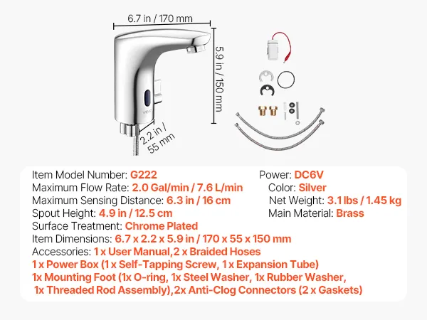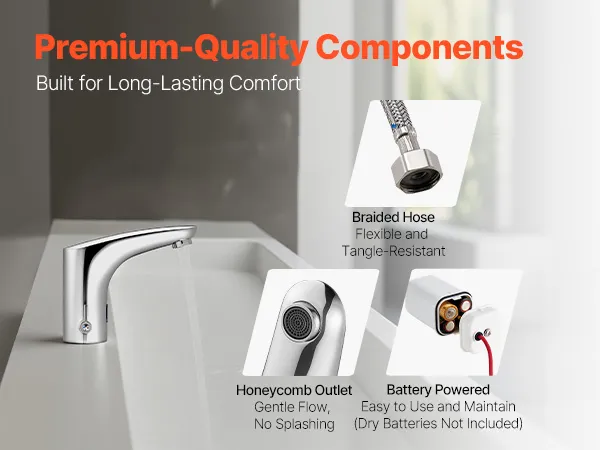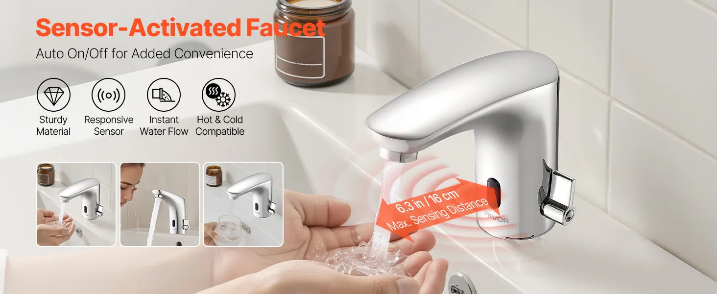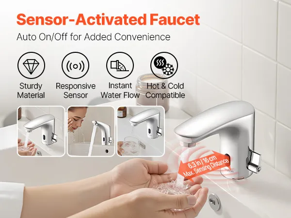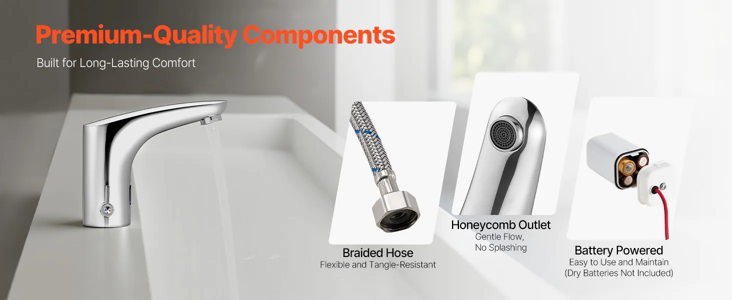 VEVOR Touchless Bathroom Sink Faucet, Automatic Motion Sensor Restroom Toilet Faucet, Hands-Free Adjustable Cold Hot Single Handle Water Mixer Battery Operated for 9.5 mm Pipe,Chrome Plated Silver