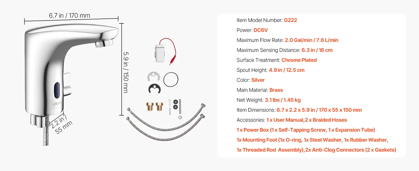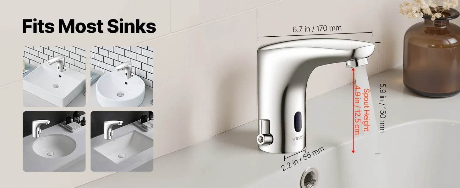 This commercial sink faucet features a sleek, modern finish and is suitable for a wide range of settings, including homes, offices, hotels, restaurants, and medical facilities.