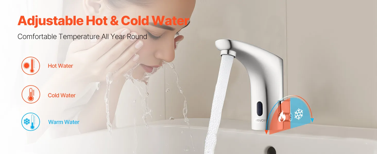 This bathroom sink faucet supports hot and cold water adjustment, delivering the ideal temperature year-round, ideal for keeping your hands comfortable in both summer and winter.